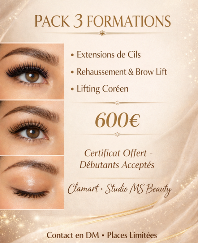 Programme – Pack 4 Formations (3 jours) : Extensions de cils / Rehaussement / Brow Lift / Lifting Coréen – 600€